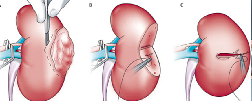 Ακολουθεί η αφαίρεση , του τμήματος του νεφρού μαζί με τον όγκο, με απόσταση ασφαλείας περίπου ενός εκατοστού από το υπόλοιπο υγιή νεφρικό παρέγχυμα.